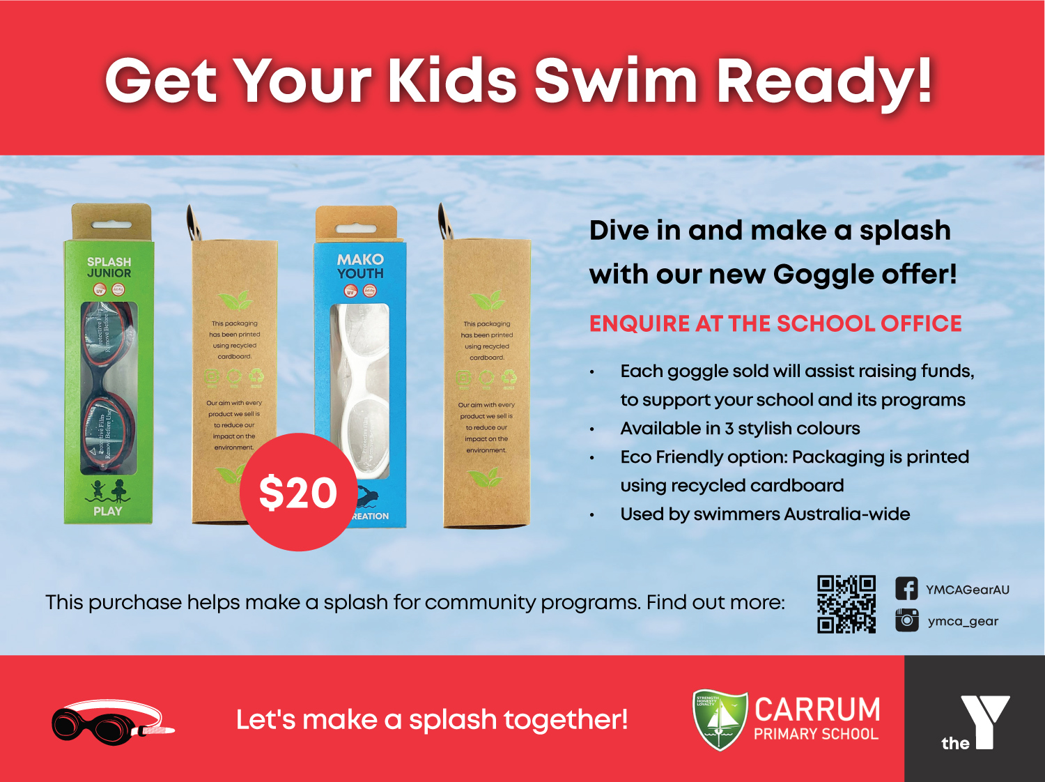 Feel free to drop in and grab a pair ready for swimming. Payment is $20