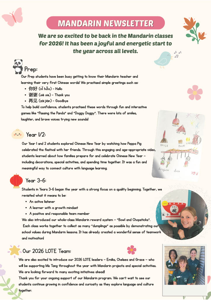 We will be holding an assembly this Friday 27th March at 2:40pm to finish the week. This will be the last assembly of the term as next week the term finishes on Thursday 2nd April at 2:30pm (Due to the ‘Good Friday’ public holiday on Friday 3rd April). Students will be dismissed from their classrooms at the conclusion of the day.